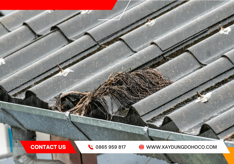 - Dấu hiệu: Máng xối có cỏ mọc, nước thoát chậm sau khi mưa tạnh, hoặc có tiếng nước chảy xiết bên trọng tường.