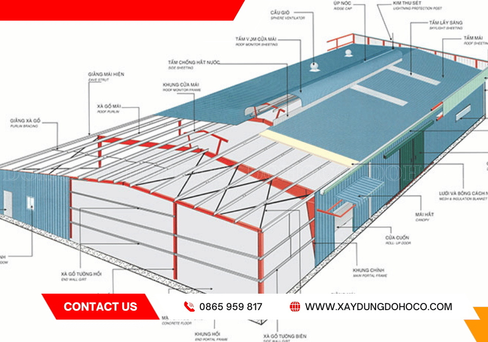 Đây là phần quan trọng đối với nhà xưởng khung thép tiền chế. Nó bao gồm: