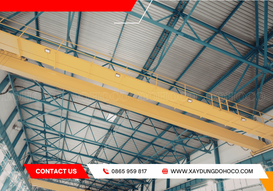 - Cầu trục: Nếu xưởng có nhu cầu nâng hạ hàng hóa nặng, hệ thống dầm biên và đường ray cầu trục phải được tích hợp ngay từ khâu thiết kế kết cấu thép.