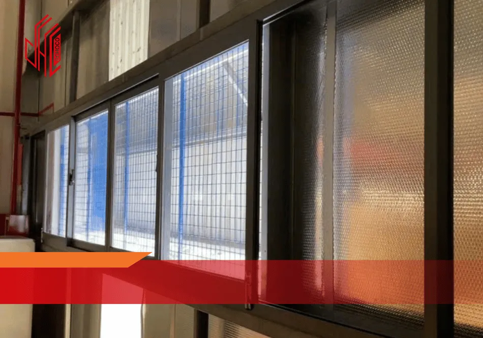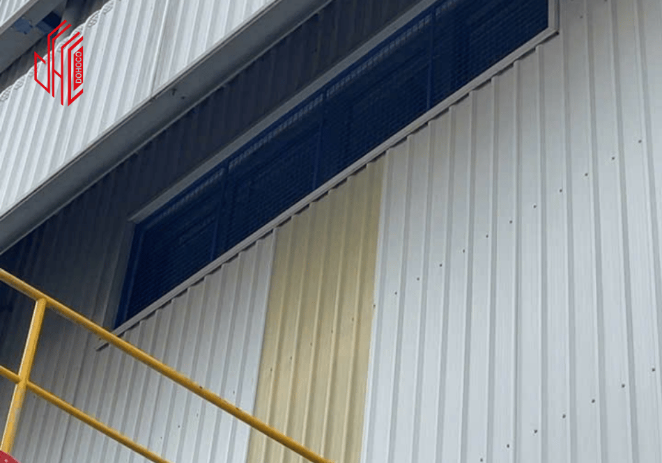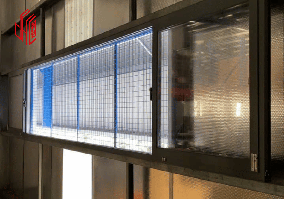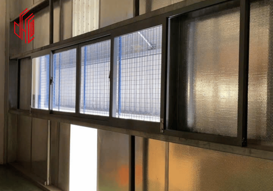 Lắp đặt khung lưới, cửa lùa nhôm tấm nhựa trong suốt, khu vực kho tầng 1 xưởng mới