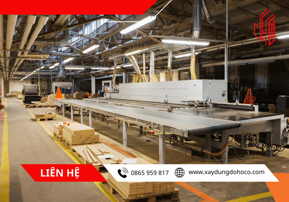 - Tải trọng máy móc: Các máy xẻ, máy chà nhám, máy ép gỗ công nghiệp có trọng lượng rất lớn. Đòi hỏi nền móng nhà xưởng phải được tính toán cực kỳ chính xác.