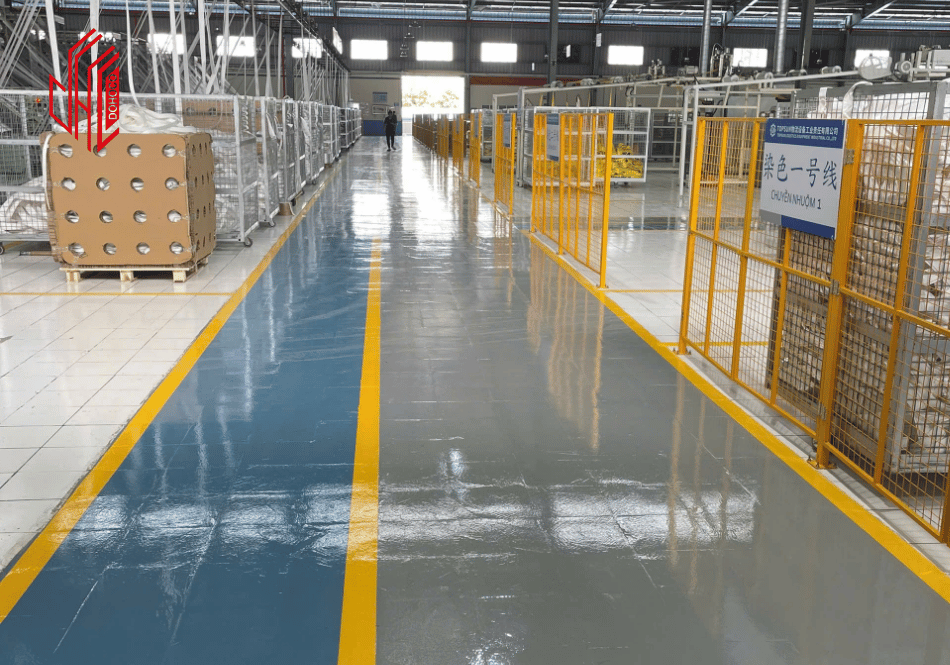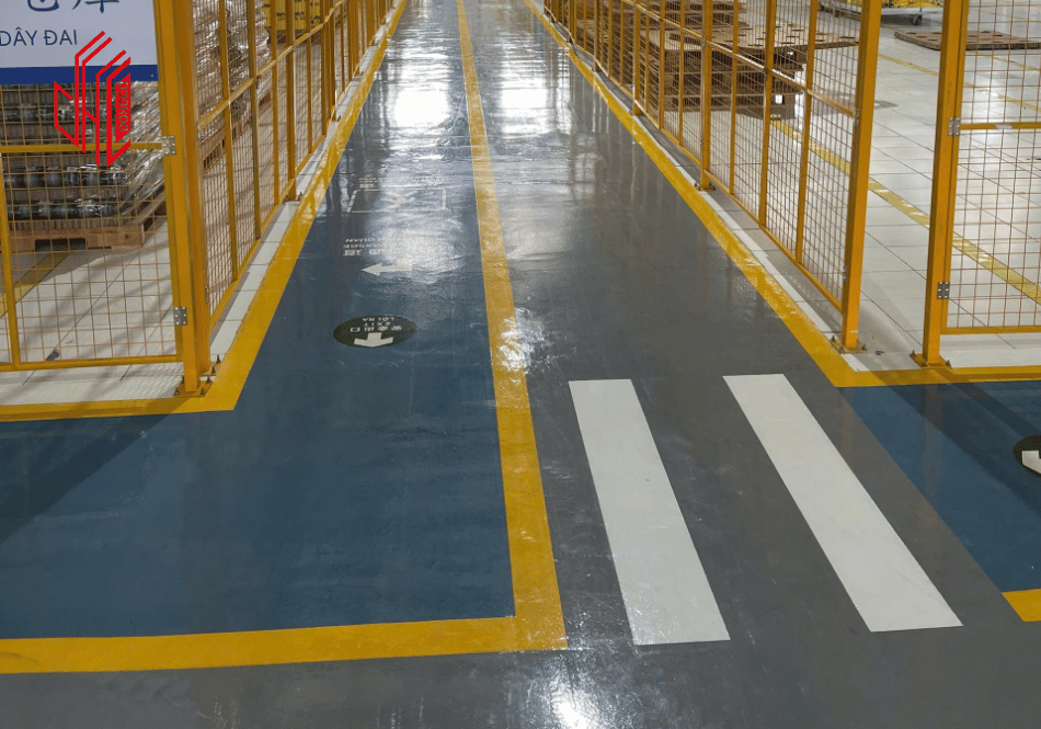 Trong quá trình vận hành nhà xưởng, nền sàn luôn phải chịu tải trọng lớn từ máy móc, xe nâng và công nhân di chuyên thường xuyên. Vì vậy, việc lựa chọn giải pháp sơn PU layout là cần thiết vừa bảo vệ bề mặt. Vừa tạo bố cục sản xuất khoa học, đảm bảo an toàn lao động.