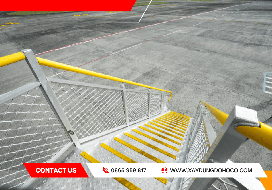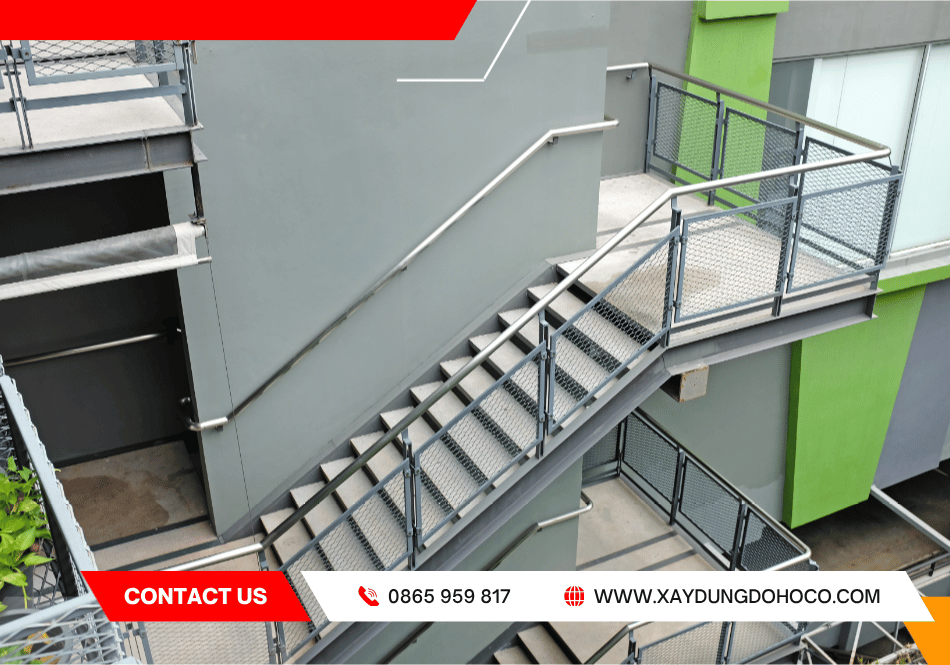 - Có lan can bảo vệ, bản bậc chống trượt, đảm bảo an toàn cho người thoát nạn.