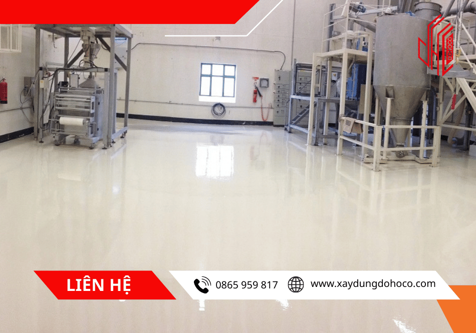 - Giải pháp: Sử dụng sơn Epoxy tự san phẳng hoặc sàn PU bê tông dày từ 3mm - 9mm. Đặc biệt, tại các góc tiếp giáp tường và sàn phải được bo cung tròn (len chân tường) bằng vật liệu chuyên dụng để tránh đọng bẩn.